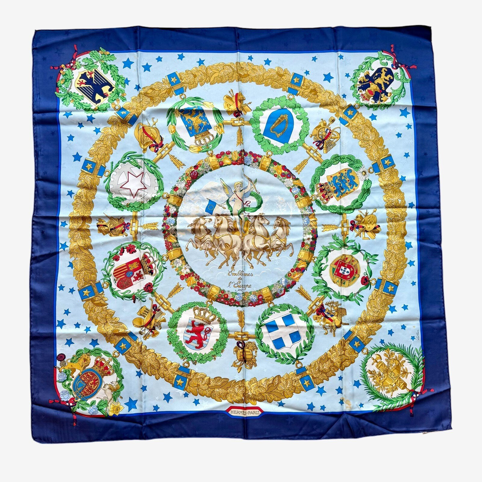 A variation of the Hermès scarf `Emblèmes de l'europe` first edited in 1993 by `Caty Latham`