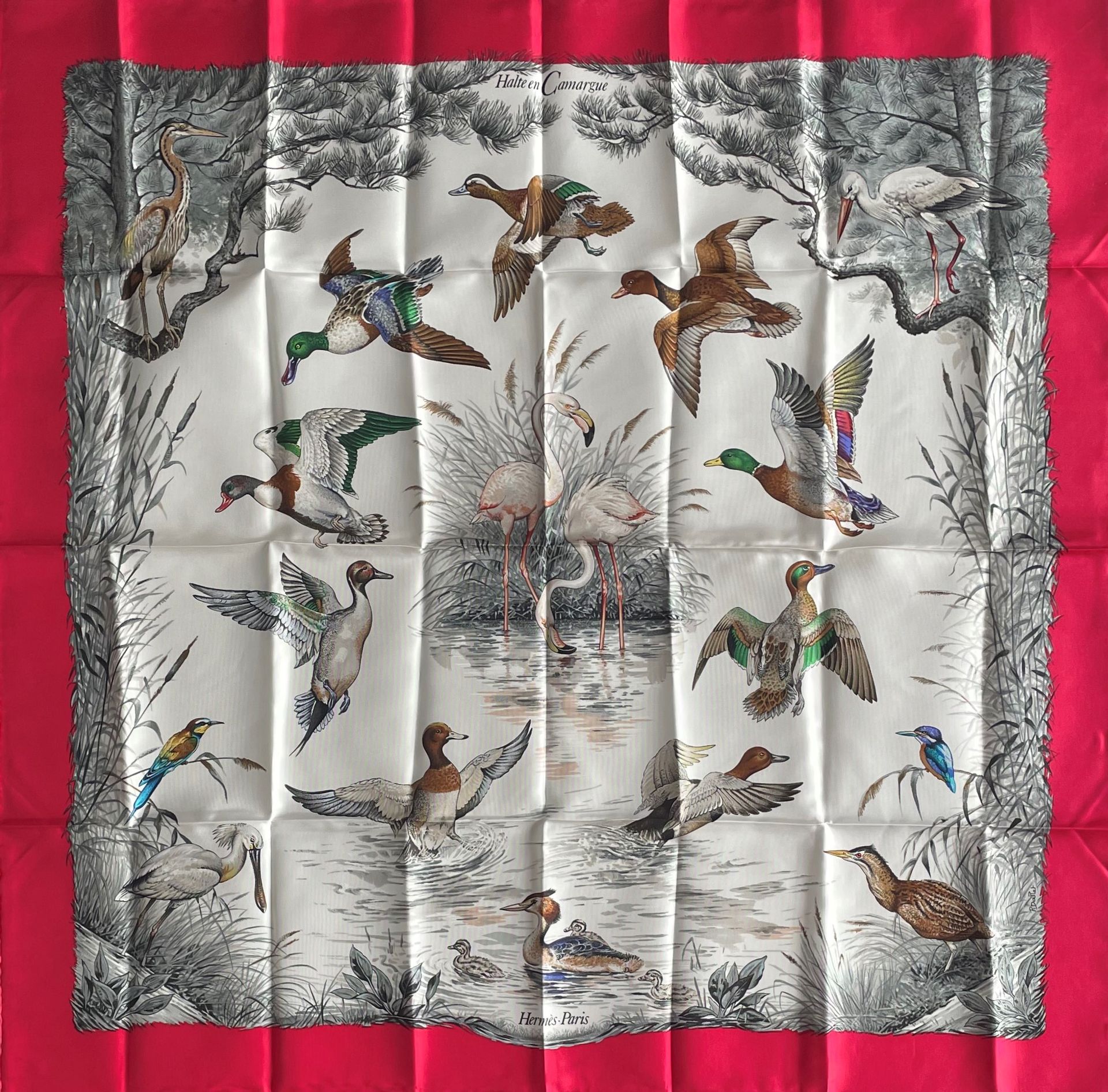 A variation of the Hermès scarf `Halte en camargue ` first edited in 1989 by `Robert Dallet`